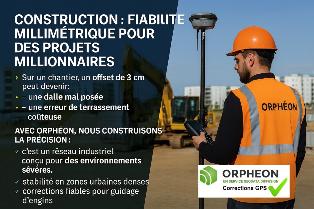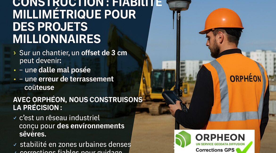 Avec Orphéon, nous construisons la précision : 👉 c’est un réseau industriel conçu pour les environnements sévères. ✔️ stabilité en zones urbaines denses ✔️ corrections fiables pour guidage d’engins ✔️ continuité même sur les grands linéaires