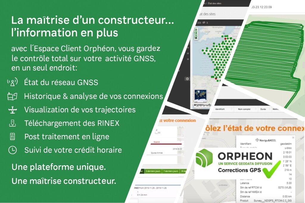 Avec l’Espace Client Orphéon, vous gardez le contrôle total sur votre activité GNSS, en un seul endroit :